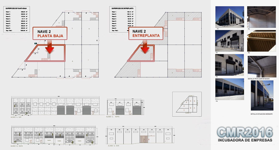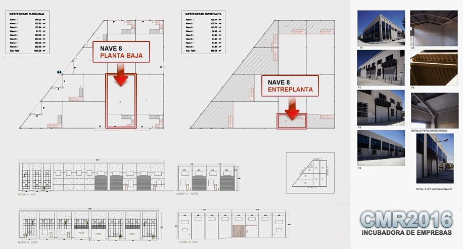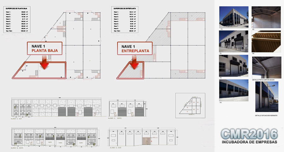 El vivero de empresas CMR-2016 dispone de las instalaciones y adecuaciones necesarias para constituir un edificio Eco-sostenible, formado por 8 Naves Industriales con Licencia de Primera Ocupación, ubicadas en el Polígono de las Quemadas.